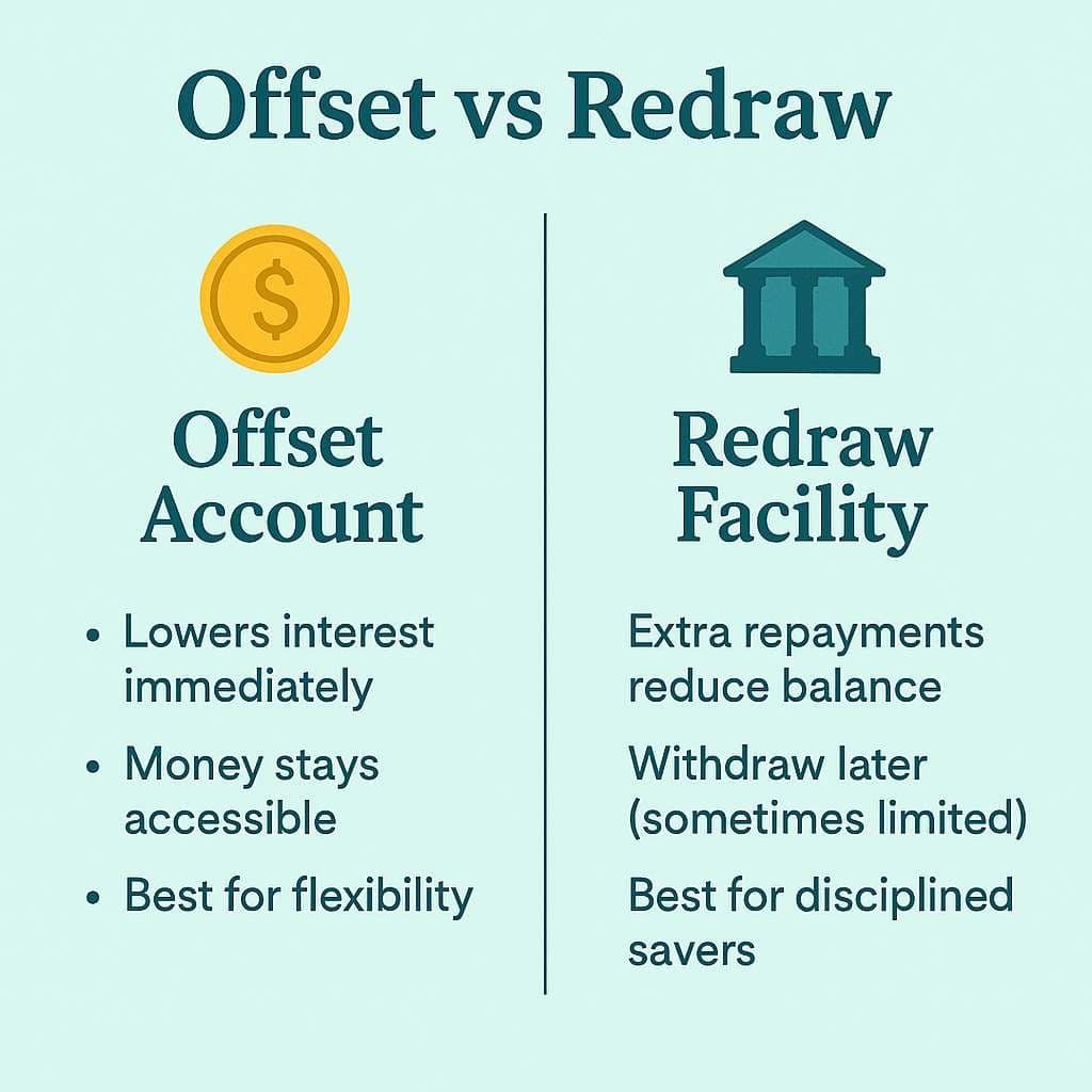 Many savvy borrowers choose to use both features — combining an offset account for everyday savings and emergencies, and a redraw facility for long-term extra repayments they don’t intend to access.